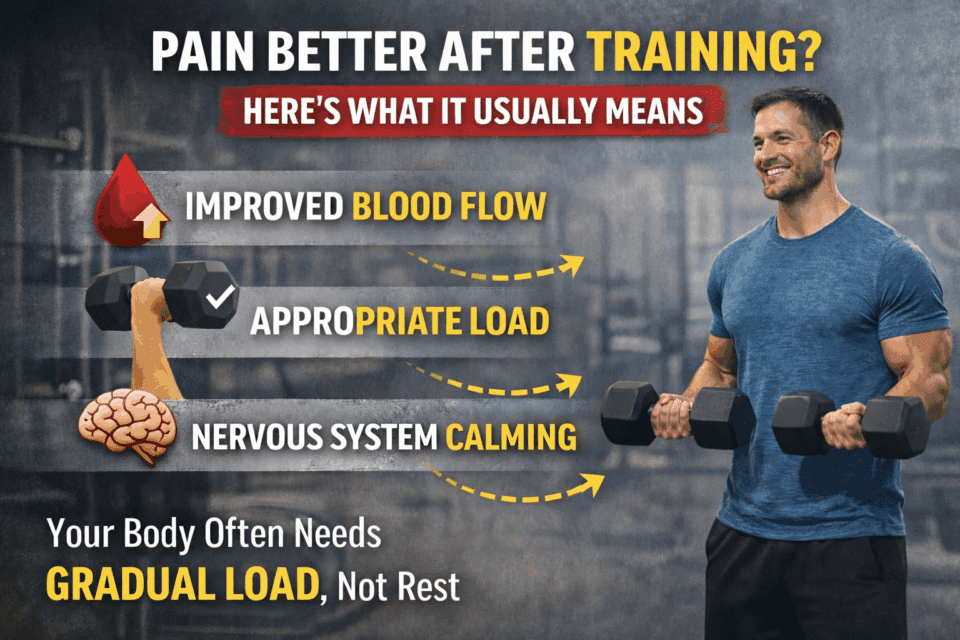 In many cases, pain reduction after training is a signal that your body is responding positively to the right kind of load—not a sign that the injury is gone, but that healing is moving in the right direction.